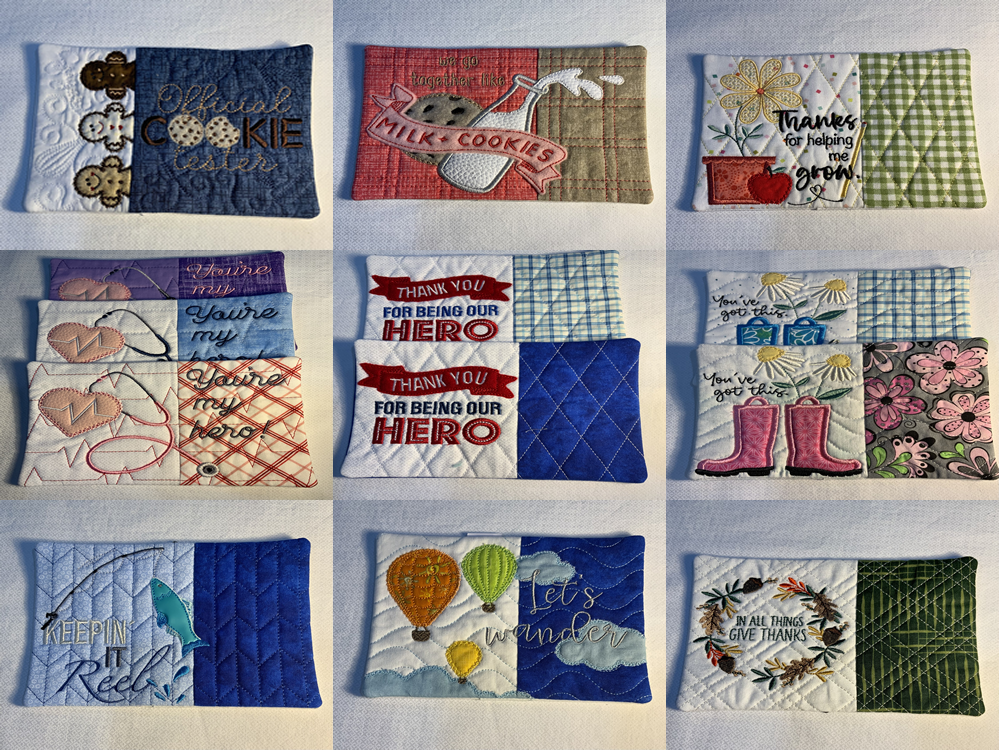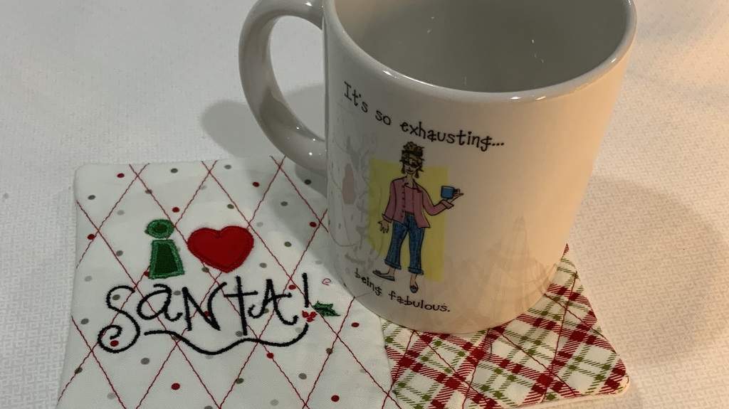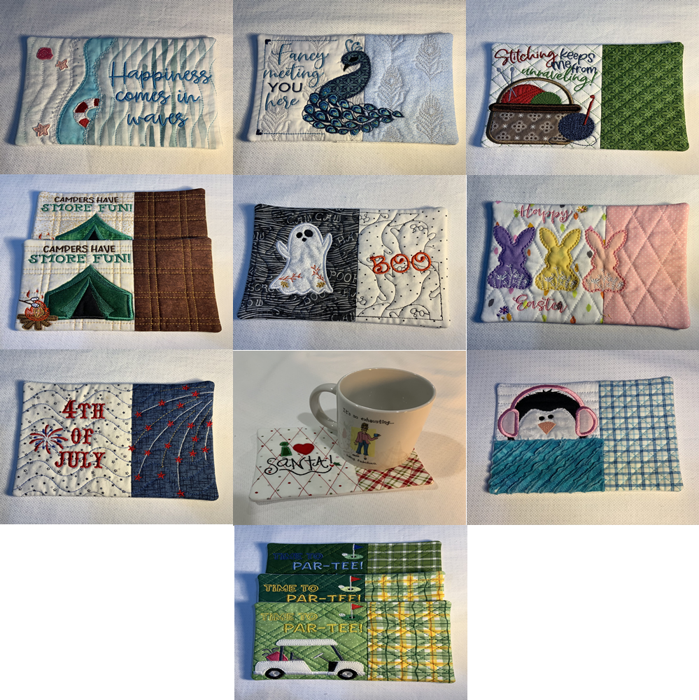 These mug rug are a quilted and machine embroidered 4.5”x6.5” coaster made with cotton pre-washed fabrics. They are perfect for a coffee cup, tea lover, or wine glass. They protect your table while adding a bit of decorations. Some designs are season and other are just fun! They are great gifts for coffee or tea lover, teachers, healthcare professionals etc.. You can request a color scheme but actual fabrics will vary. Check out all my design sample below.